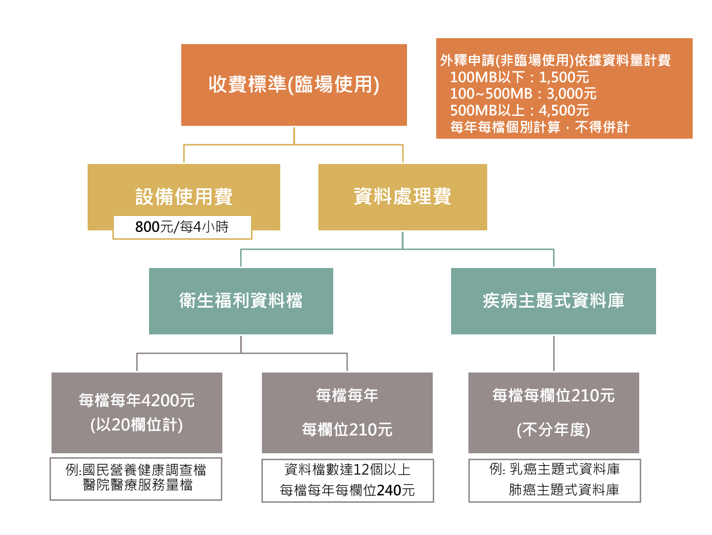 - 【衛生福利資料檔與主題式資料庫(Health-82、83、101、104)】計費注意事項,請參考收費範例。